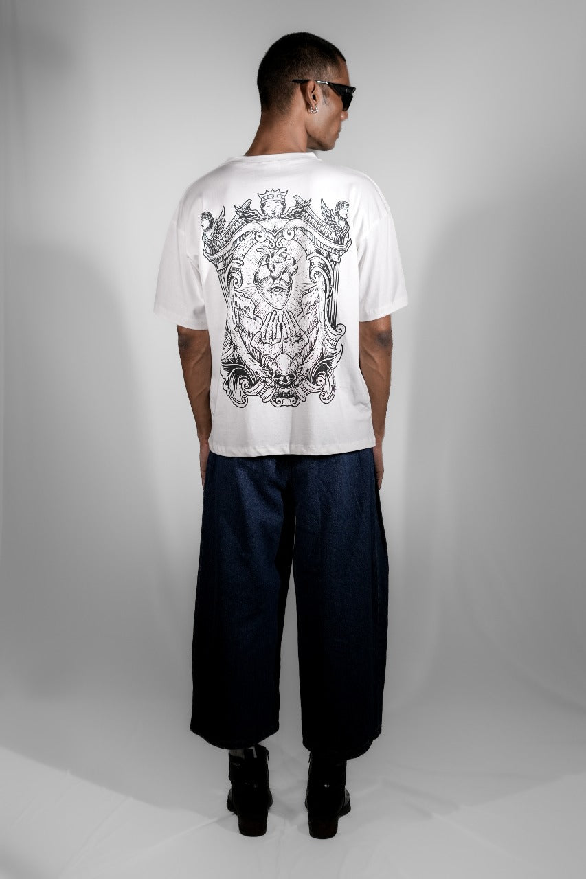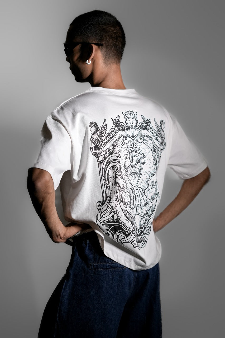 Beneath cathedrals that time forgot, there lies a relic—an ornate heart, encased in rusted silver, held gently between hands frozen in eternal prayer. These hands never asked for salvation; they promised it. Not to gods, but to the broken, the betrayed, and the unheard. The design speaks of a vow made in silence: to protect what still beats beneath the scars. Wearing this symbol is not a plea—it’s a pact. It calls to the quiet warriors, the ones who carry pain like armor and faith like fire. The heart is not weak. It kneels so it can rise.